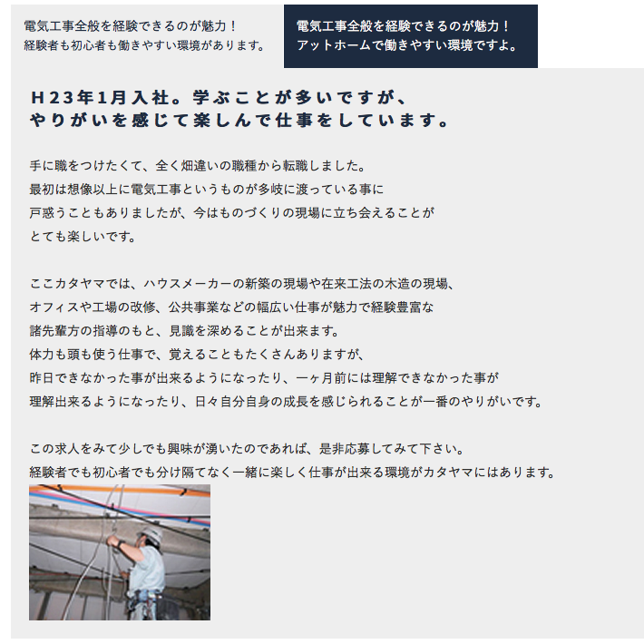 経験者でも初心者でも分け隔てなく一緒に楽しく仕事が出来る環境がカタヤマにはあります。