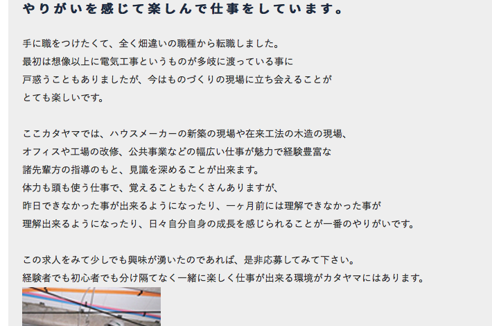 経験者でも初心者でも分け隔てなく一緒に楽しく仕事が出来る環境がカタヤマにはあります。