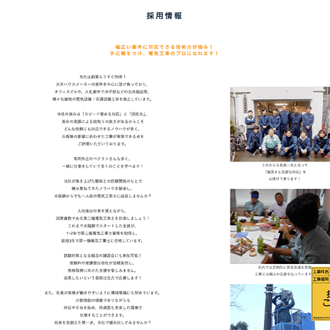昭和23年の創業から、生活の基盤ともいえる電気設備工事に携わり、